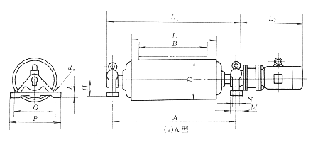 (1).因目前外裝式電動滾筒尚未制定相關行業標準,本廠將該型號電動滾筒首位代號用W(“外裝”的首位漢語拼音)表示。外裝式電動滾筒外置電機可分為立式電機和臥式電機,用戶訂購時請加以說明;